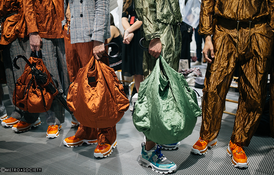 รูปร่างของเสื้อผ้าจะถูกรังสรรค์ผ่านการผสมผสานกลิ่นอายแนวสปอร์ตเข้ากับดีไซน์ที่เป็นทางการ สปอร์ตแวร์จะถูกตีความในแพทเทิร์นที่ดูคลาสสิค เสื้อเชิ้ตจะมาพร้อมกับดีเทลเชือกผูกที่ชายเสื้อเช่นเดียวกับสเวตเชิ้ต ในขณะที่แจ็คเก็ตและกางเกงเข้าชุด (track suits) หนังกลับฟอกสีจะให้สัมผัสอันอ่อนนุ่มเมื่อสวมใส่