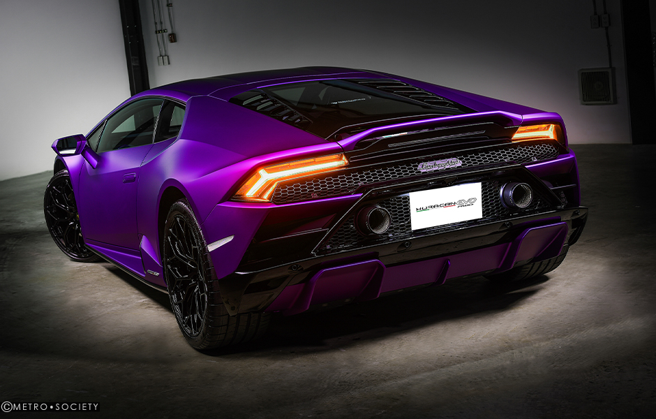 สืบทอดดีไซน์อันทรงพลังของเครื่องยนต์ V10 NA ลัมโบร์กินี พร้อมฟังก์ชั่นใหม่ทั้งหน้าและหลัง แตกต่างจาก Huracán EVO 4WD อย่างชัดเจน โดย Huracán EVO RWD มีการติดตั้งลิ้นกันชนหน้าที่ผลิตขึ้นมาเฉพาะเพื่อความสมบูรณ์แบบและครีบแนวตั้งภายในช่องดักลมขนาดใหญ่ด้านหน้า กันชนหลังสีดำไฮกลอสติดตั้งเข้ากับดิฟฟิวเซอร์เฉพาะสำหรับ Huracán EVO RWD