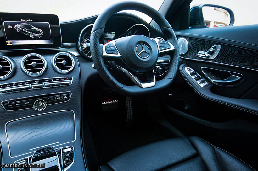 The C 350 e ขับเคลื่อนด้วยเครื่องยนต์เบนซิน 4 สูบแถวเรียง ความจุกระบอกสูบ 1,991 ซีซี กำลังแรงม้าสูงสุดที่ 211 แรงม้า ที่ 5,500 รอบ/นาที โดยในรุ่นซีดานมีแรงบิด 350 นิวตันเมตร ที่ความเร็วรอบ 1,200-4,000 ต่อนาที อัตราเร่ง 0-100 กม./ชม. อยู่ที่ 5.9 วินาที ความเร็วสูงสุด 250 กม./ชม. ส่วนในรุ่นเอสเตท มีแรงบิด 300 นิวตันเมตร ที่ความเร็วรอบ 1,200-4,000 ต่อนาที อัตราเร่ง 0-100 กม./ชม. อยู่ที่ 6.2 วินาที ความเร็วสูงสุด 246 กม./ชม. ขับเคลื่อนด้วยระบบส่งกำลังแบบเกียร์อัตโนมัติ 7G-TRONIC PLUS พร้อมระบบเปลี่ยนเกียร์ที่พวงมาลัย