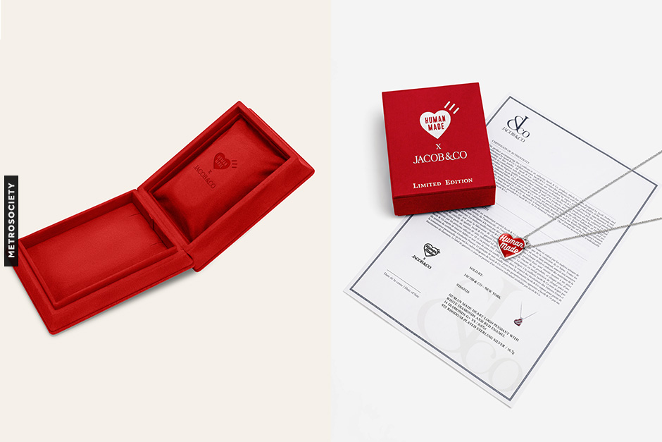 The Jacob & Co. x HUMAN MADE x JOOPITER Heart Pendant reimagines HUMAN MADE’s iconic heart through the lens of fine jewelry. Crafted in Jacob & Co.’s signature style, it feels bold yet precise refined in finish, intentional in proportion, and designed to be worn daily. It balances collectible value with real-world wearability, turning a streetwear emblem into a polished statement piece.