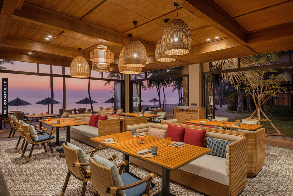 Sea Fire Salt ห้องอาหารซิกเนเจอร์ โดดเด่นด้วยการย่างบนแผ่นเกลือหิมาลายัน เสิร์ฟเนื้อพรีเมียมและอาหารทะเลสดในบรรยากาศโปร่งโล่ง พร้อมวิวทะเล