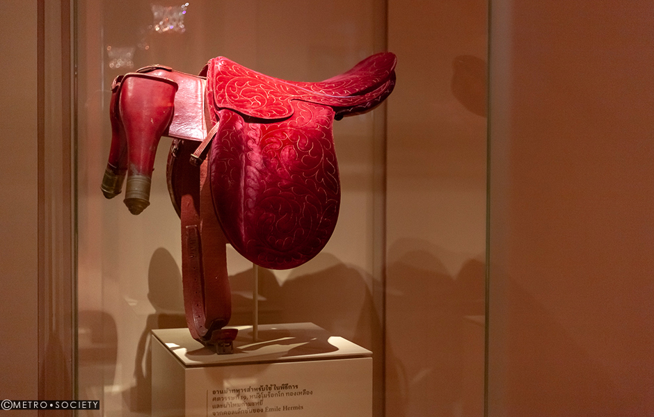 อานม้าทหารสำหรับใช้ในพิธีการ ศตวรรษที่ 19 หนังโมร๊อกโก ทองเหลืองและผ้าไหมกำมะหยี่จากคอลเลคชั่นของ Emile Hermes
