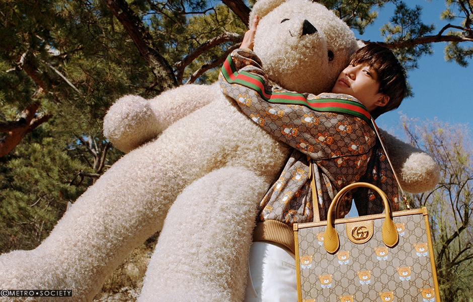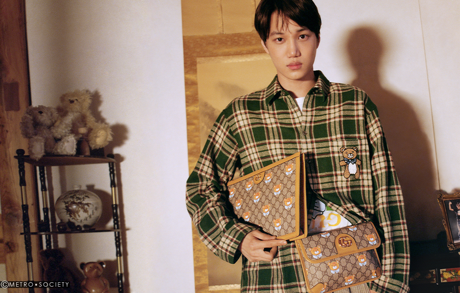 To showcase this exclusive product proposal, Gucci’s latest campaign was conceived by Alessandro Michele and shot by South Korean photographer Min Hyunwoo and Film Director Woogie Kim with KAI on the streets of Seoul, and it celebrates the relationship between human beings and their fluffy, furry friends. Dressed in the new KAI x Gucci Collection, the K-pop star is accompanied by a giant teddy as he enjoys a day. The duo buy balloons, go for a drive, dance and meet up with friends before heading home to KAI’s place to play games with the rest of his impressive teddy bear squad.