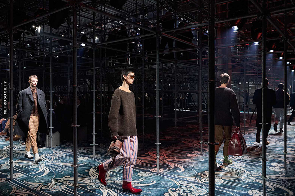 The physical staging of the show was as much a part of the narrative as the clothes. Designed by AMO, the Fondazione Prada’s Deposito was reimagined as a dialogue between raw and refined. A stark industrial metal framework clashed against tactile carpets originally designed by Catherine Martin. The collision of textures highlighted the theme of contradiction, where opposing forces sharpen each other rather than cancel out.