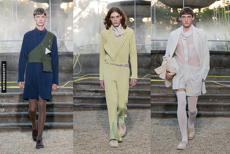 ความพิเศษของคอลเลคชั่นนี้อยู่ที่การขยายขอบเขตของเทคโนโลยีพลีตให้ใกล้เคียงงานประติมากรรมมากขึ้น พื้นผิวถูกทดลอง ห่อ พับ ซ้อน และปล่อยให้ผ้ากำหนดรูปทรงของตัวเอง แทนที่จะบังคับมันด้วยแพตเทิร์นแข็ง ๆ ผลลัพธ์คือเสื้อแจ็กเก็ต กางเกง และท็อปที่ดูเรียบในระยะไกล แต่มีมิติเมื่อเข้าใกล้ เหมาะกับผู้ชายที่ให้ความสำคัญกับดีเทลมากกว่าการโชว์โลโก้